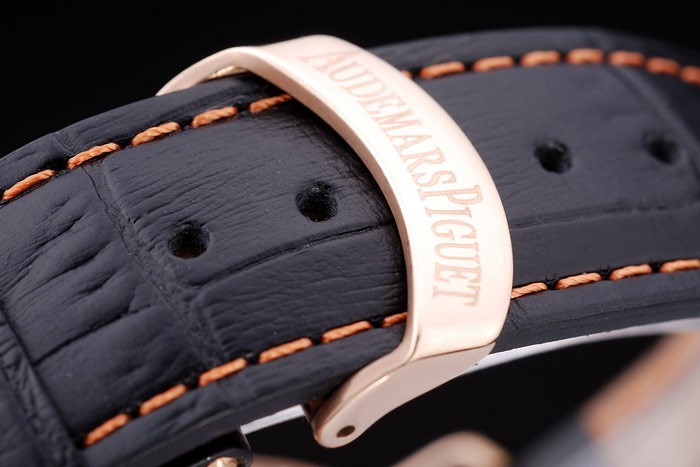 Szín: fekete < br> Case: 18k rózsa arany bevonatú rozsdamentes acél tok katalógusa szíj: fekete krokodil bőrszíj narancssárga varrás és hő dombornyomott Audemars Piguet nevét és logóját, valamint egy Audemars Piguet feliratos 18k rózsa arany bevonatú flip-át horog csattal karkötő katalógusa Hossz: 245 x 22 mm