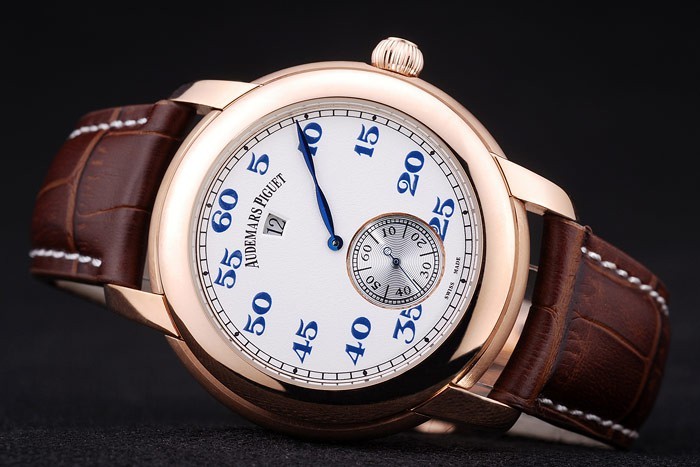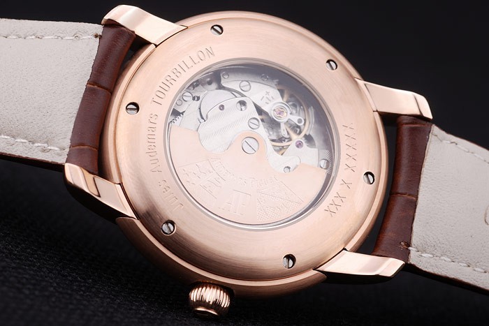 Colar: Brown < br> Case: 18k rózsa arany bevonatú rozsdamentes acél tok katalógusa szíj: barna krokodil bőrszíj fehér cérnával varrás és hő dombornyomott Audemars Piguet nevét és logóját, valamint egy Audemars Piguet feliratos 18k rózsa arany bevonatú flip-át horog csattal katalógusa Karkötőhossz: 245 x 22 mm