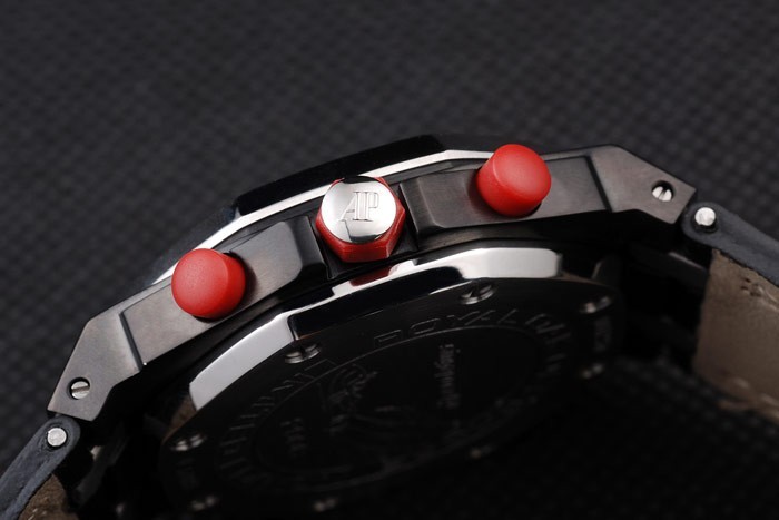 karkötő: Heat dombornyomott Audemars Piguet fekete krokodil bőrszíj dupla vörös varrással és Audemars Piguet gravírozott ion-bevonatú szeres-in csattal