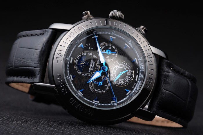 : a japán Miyota katalógusa Szín: fekete-ügy: ion-bevonatú rozsdamentes acél tok katalógusa szíj: Heat dombornyomott Audemars Piguet fekete krokodil bőrszíj Audemars Piguet vésett ion bevonatú kinyitható zárral katalógusa karkötő hossza: 230 x 22