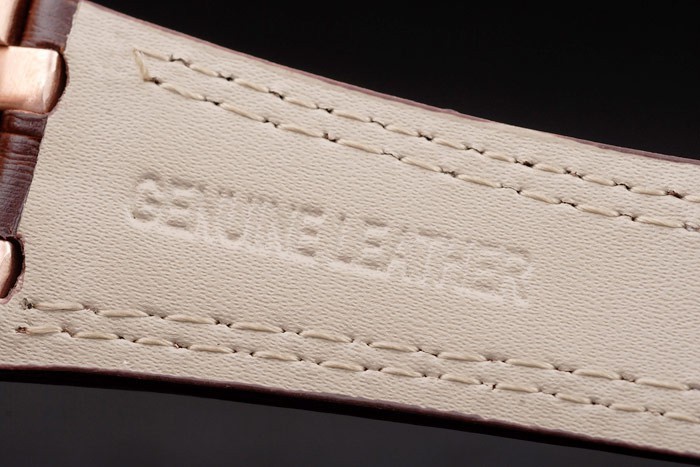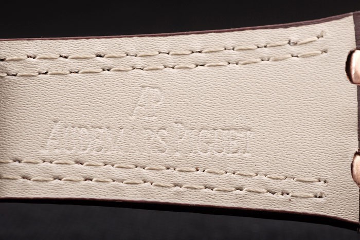karkötő: Heat dombornyomott Audemars Piguet sötétbarna krokodil bőr szíj dupla fehér varrással és Audemars Piguet vésett rózsa-aranyozott szeres-in csattal