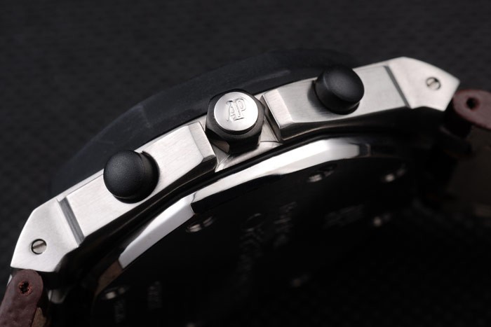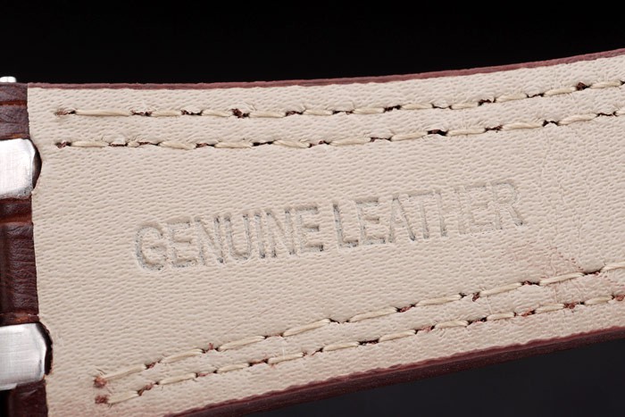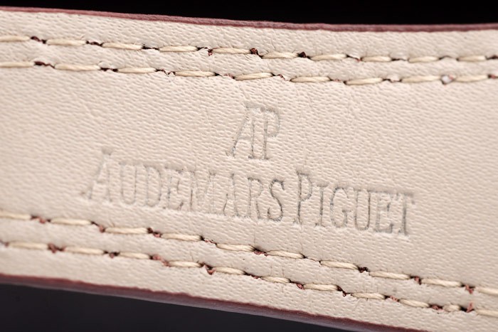 karkötő: Heat dombornyomott Audemars Piguet barna krokodil bőr szíj dupla fehér varrással és Audemars Piguet gravírozott rozsdamentes acélból széthúzható in csattal