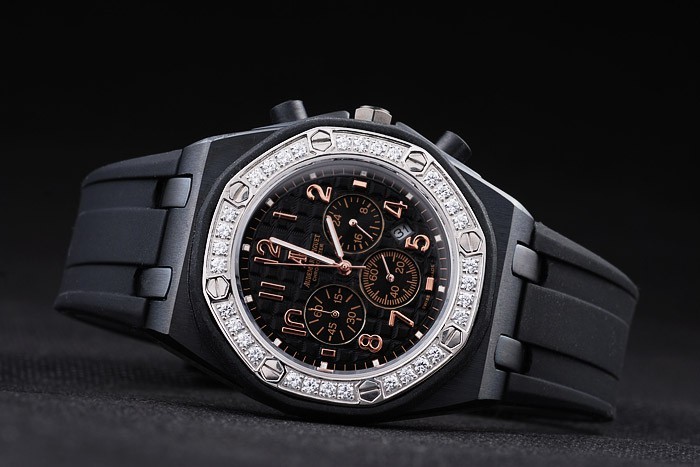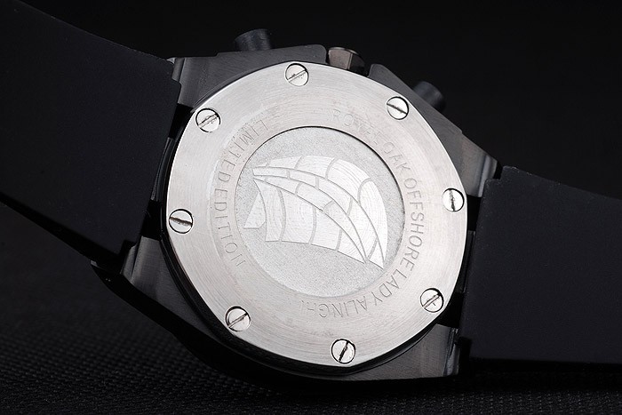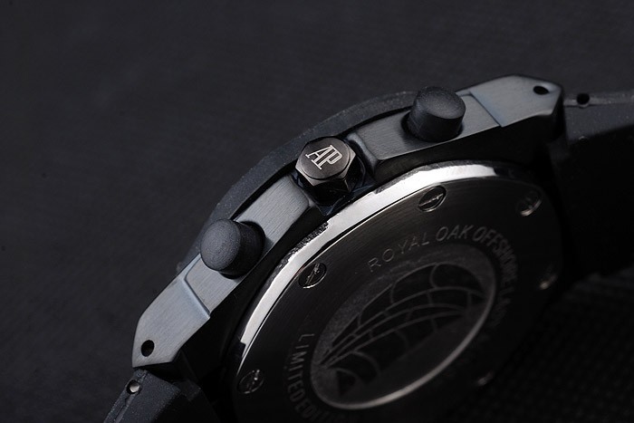 Fejpánt: Gumi katalógusa átmérő: 53 x 43 mm-es katalógusa Chronograph: Si katalógusa Watch Kapcsos: Flip csat katalógusa Üveg: zafír kristály katalógusa Crown: ion bevonatú hatszögletű korona a monogramja AP plus egy ionozott kerek korona mindkét oldalán