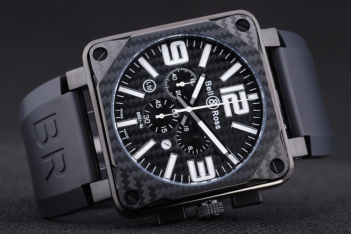 karkötő: Heat dombornyomott Bell & Ross logó és a termék kódja fekete gumi heveder ion bevonatú horog-csattal csattal