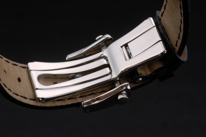 karkötő: Breguet hő domborított fekete krokodil bőr heveder gravírozott palacsinta polírozott rozsdamentes acél hajtogatott rozsdamentes acélhuzalhoz
