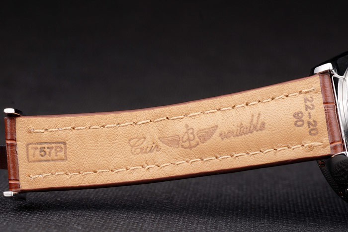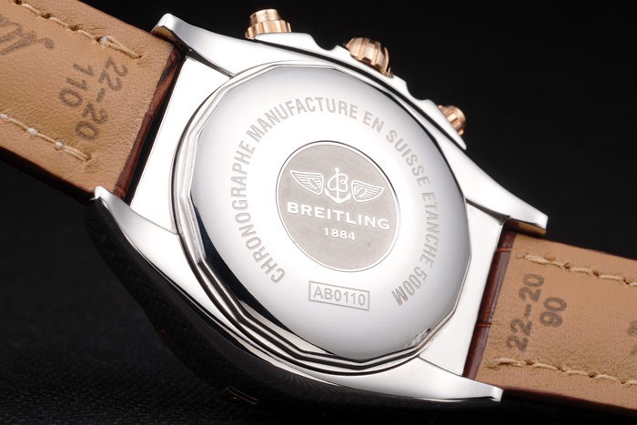 Case: Polírozott rozsdamentes acél tok br> szíj: barna krokodil bőrszíj szabadalmi fehér varrással és hő dombornyomott Breitling metszetek és gravírozott rozsdamentes acél szeres csattal Breitling embléma tetején katalógusa karkötő hossza: 211 x 22 mm katalógusa keret: polírozott rozsdamentes acél keret 3 , 6, 9 és 12 óra rose-gold index markerek és vésett perces jelölések katalógusa sáv Típus: Skin katalógusa átmérő: 54 x 44 mm-es katalógusa Watch csattal: Flip csat katalógusa Üveg: zafír kristály katalógusa korona: 18k rózsa arany bevonatú rozsdamentes acél cutwork korona Breitling logó és két kisebb korona két oldalán azt katalógusa Case Vastagság: 17 mm Matton