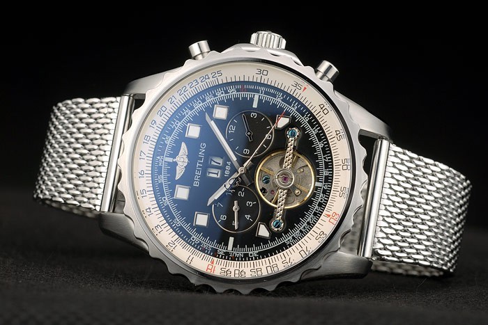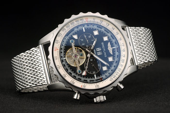 BEZEL: acél cutwork keret katalógusa sáv Típus: rozsdamentes acél katalógusa Átmérő: 56 x 49 mm-es katalógusa Watch csattal: Biztonsági csat katalógusa Üveg: zafír kristály katalógusa korona: polírozott rozsdamentes acél cutwork korona Breitling logó és két Kis kerek nyomógombok koronák mindkét oldalán