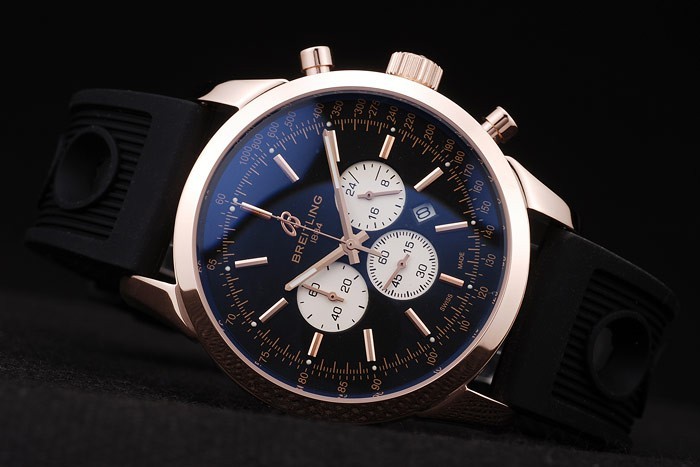 Szín: Fekete-ügy: 18k rose-gold aranyozott esetben katalógusa szíj: fekete gumi heveder Breitling logo vésett rózsa-aranyozott hook-csat csat katalógusa karkötő hossza: 225 x 24 mm katalógusa Keret: 18k Rose-Gold bevonat