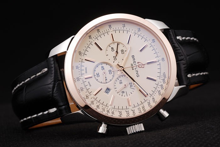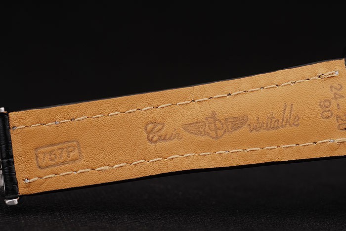 : Polírozott rozsdamentes acél tok > szíj: Heat dombornyomott Breitling fekete krokodil bőrszíj fehér cérnával varrás és a Breitling embléma vésett kinyitható rozsdamentes csattal katalógusa karkötő acél Hossz: 210 x 24 mm katalógusa keret: 18k rose-gold plated előlap katalógusa zenekar Típus: Krokodil