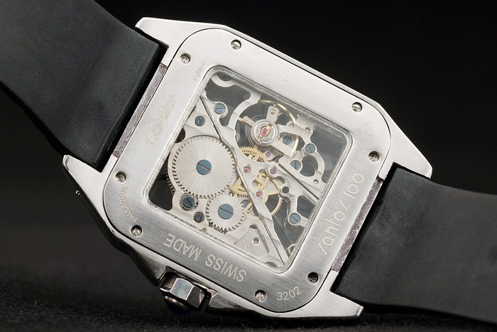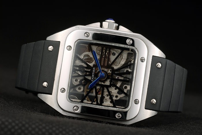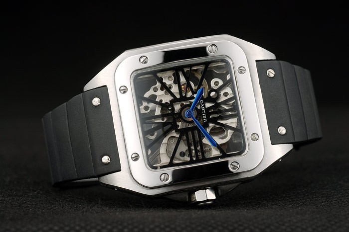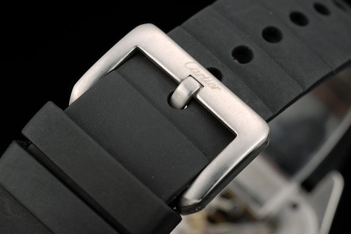 Case: csiszolt rozsdamentes acél tok > szíj: fekete gumi heveder Cartier feliratos rozsdamentes acél horog csattal csattal katalógusa karkötő hossza: 200 x 23 mm katalógusa keret: polírozott rozsdamentes acél csavaros előlap katalógusa sáv Típus: Skin katalógusa Átmérő: 53 x 41 mm katalógusa Watch Kapcsos: Buckle katalógusa Glass: Crystal katalógusa Crown Sapphire: Zafír kristály stud rozsdamentes acél nyolcszögletű korona katalógusa Case Vastagság: 13 mm Matton