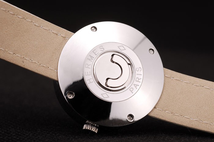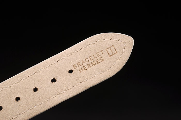 Case: Polírozott rozsdamentes acél tok br> szíj: Fehér bőrszíj hő szárazbélyegzőt karkötő Hermes és a Hermes vésett polírozott rozsdamentes acél horog csattal csattal katalógusa karkötő hossza: 195 x 16 mm katalógusa keret: Hermes Paris vésett polírozott rozsdamentes acél keret katalógusa Fejpánt : Bőr átmérő: 33 x 33 mm
