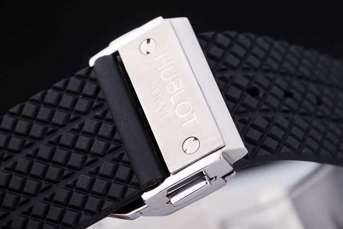 Fejpánt: gumi katalógusa átmérő: 54 x 42 mm-es katalógusa Watch Kapcsos: Flip csat katalógusa korona: polírozott rozsdamentes acél cutwork korona Hublot logo gumi csap és gumi stud rozsdamentes acél nyomógomb korona két oldalán Ez
