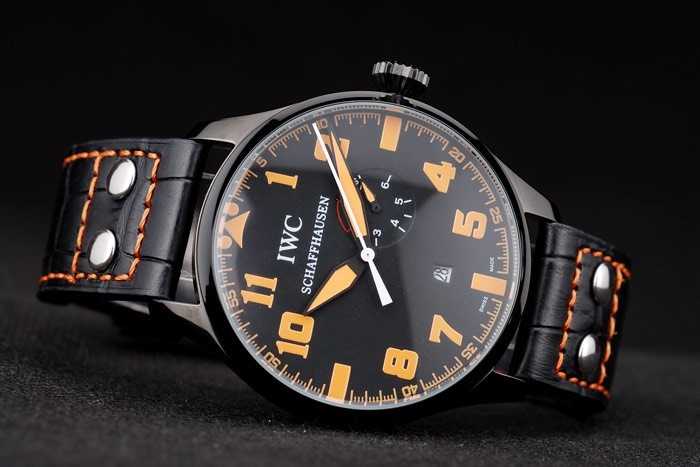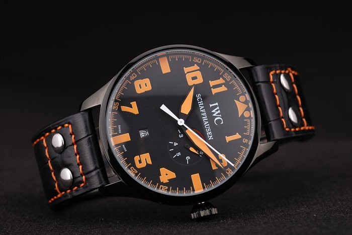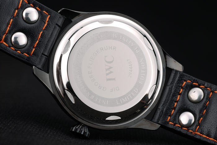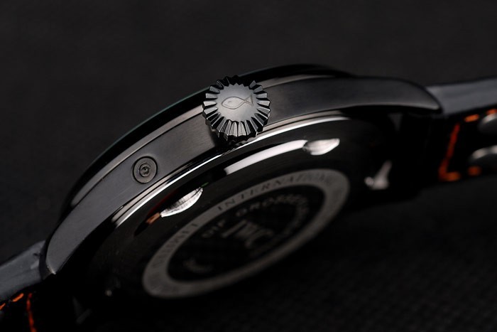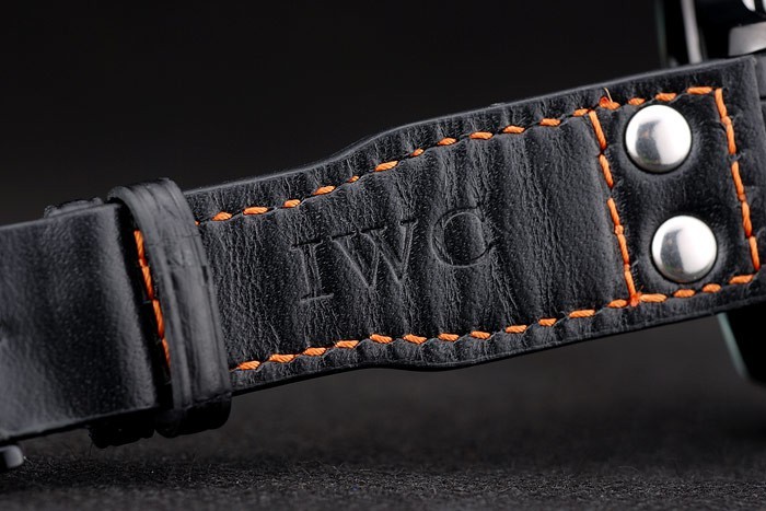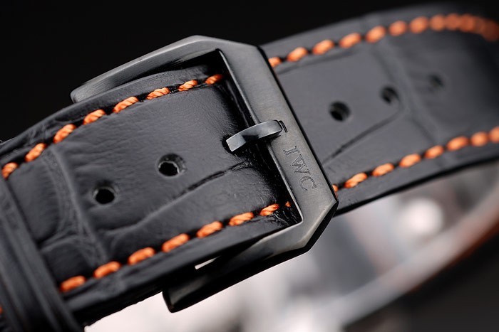 karkötő: IWC hő dombornyomott fekete krokodil bőr heveder narancssárga varrással és IWC gravírozott ionozott rozsdamentes acél horog-csattal csatolás