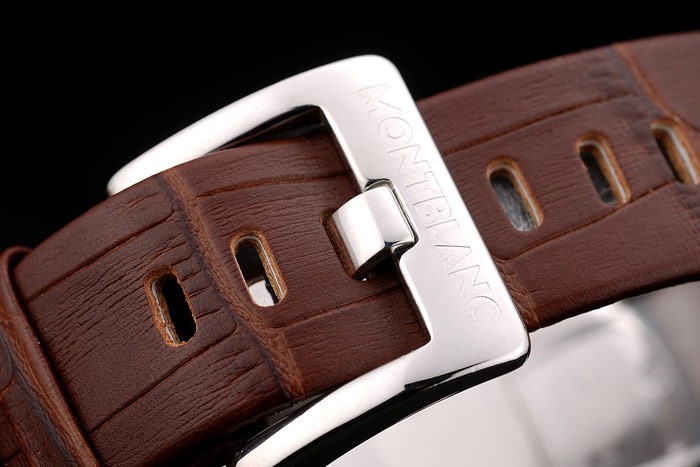 Karkötő: MontBlanc hő dombornyomott barna krokodil bőrszíj MontBlanc feliratos polírozott rozsdamentes acél horog csattal csattal katalógusa karkötő hossza: 198 x 22 mm katalógusa keret: polírozott rozsdamentes acél keret katalógusa sáv Típus: Skin katalógusa Átmérő: 50 x 41 mm katalógusa Watch Kapcsos: Buckle katalógusa Üveg: zafírüveg katalógusa korona: polírozott rozsdamentes acél cutwork korona MontBlanc logó és két polírozott rozsdamentes acél nyomógomb koronát a jobb és a nyomógomb korona bal