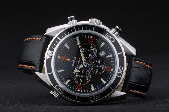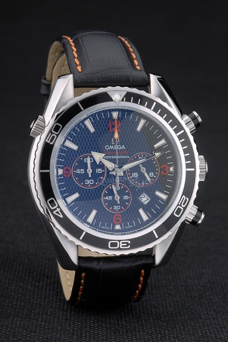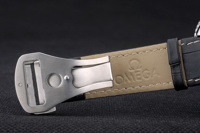 Case: csiszolt rozsdamentes acél esetében katalógusa szíj: Orange varrott fekete bőr szíjjal hő dombornyomott Omega bélyegző és polírozott rozsdamentes acél szétnyitható a csattal Omega logó tetején katalógusa karkötő hossza: 210 x 20 mm katalógusa Keret: fekete zománcozott szálcsiszolt rozsdamentes acél cutwork keret világító perc markerek katalógusa sáv Típus: Skin katalógusa Átmérő: 50 x 43 mm-es katalógusa Watch csattal: Buckle katalógusa Üveg: zafírüveg katalógusa korona: szálcsiszolt rozsdamentes acél cutwork korona Omega logó és két Kisebb koronák mindkét oldalon, valamint egy további korona az ellenkező felső sarokban