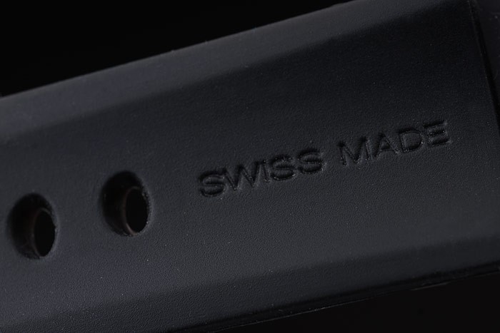 karkötő: fekete gumi heveder hő dombornyomott műhelyekkel Panerai heveder és csiszolt rozsdamentes acél hajtogatott kampók