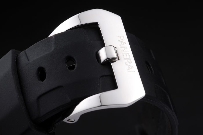 karkötő: fekete gumi heveder hő dombornyomott műhelyekkel Panerai heveder és csiszolt rozsdamentes acél hajtogatott kampók