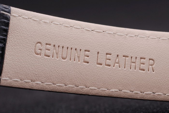 karkötő: fekete bőr heveder Patek Philippe bélyegzővel és rozsdamentes acélszalaggal