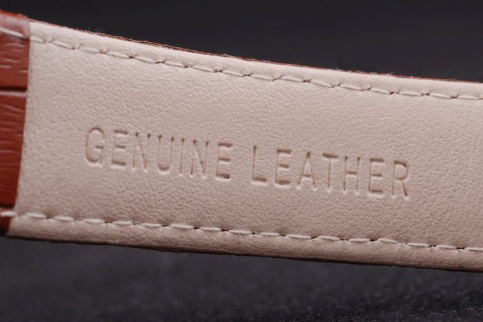 karkötő: barna bőrszíj Patek Philippe bélyegzővel és egy rózsa arany hajtás a CLASP