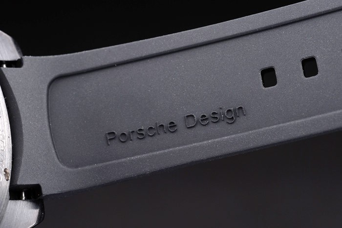 karkötő: Gumiabroncs-horny fekete gumi pánt hő dombornyomott Porsche bélyegző és ion-bevonatú horog-csat csattal Porsche felirattal