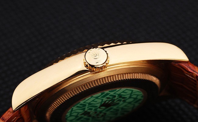 Vissza: 18k sárga aranyozott rozsdamentes acél push-in eset hátul a zöld rolex logo bélyegző
