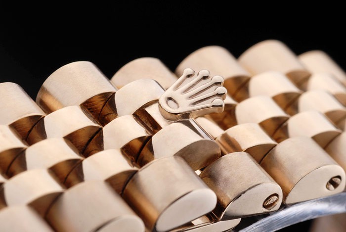 karkötő: 18k sárga aranyozott rozsdamentes acél link karkötő rolex gravírozás rejtett kapocs megjelenítése a rolex logó