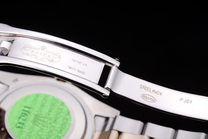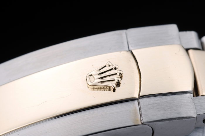 karkötő: Két tónusú link karkötő csiszolt rozsdamentes acél és 18 k sárga aranyozott acél rolex gravírozás hajtogatott – a telepítési clasp bemutatja a Rolex logót