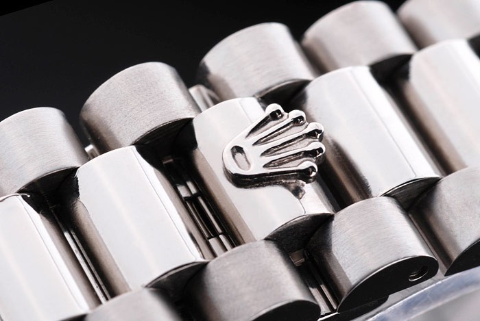 karkötő: csiszolt és polírozott rozsdamentes acél karkötő Rolex gravírozás rejtett kagylóval A Rolex logó bemutatása