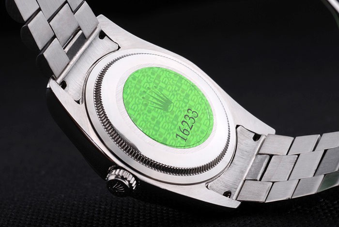 Vissza: Rozsdamentes acél push-in Case Vissza a zöld Rolex Logo bélyegzővel