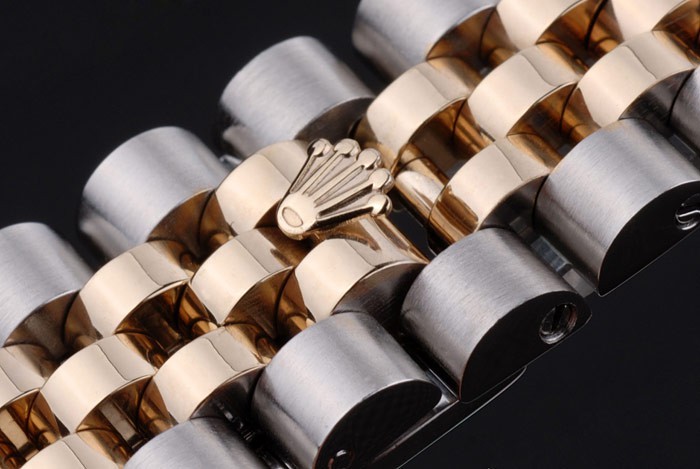 karkötő: két tónusú link karkötő csiszolt rozsdamentes acél és 18k sárgaarany bevont acél Rolex metszés rejtett kapocs megjelenítésére Rolex logo katalógusa karkötő hossza: 190 x 20 mm katalógusa keret: 18k sárga arany bevonatú rozsdamentes acél előlap cutwork katalógusa zenekar típus: rozsdamentes acél katalógusa Átmérő: 45 x 37 mm-es katalógusa Watch Kapcsos: Flip csat katalógusa Üveg: zafír kristály katalógusa Crown: 18k sárga arany bevonatú acél cutwork korona Rolex logo katalógusa Case Vastagság: 13 mm