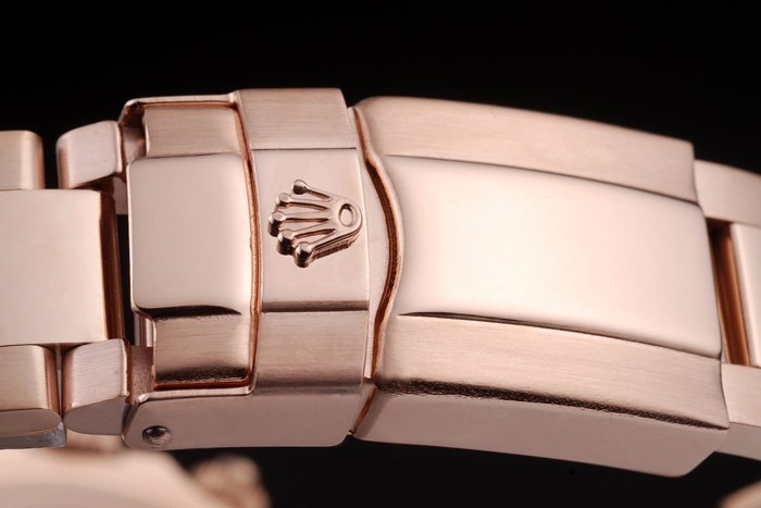 korona: 18k rózsa-arany vágás korona Rolex logó és kisebb koronák mindkét oldalán