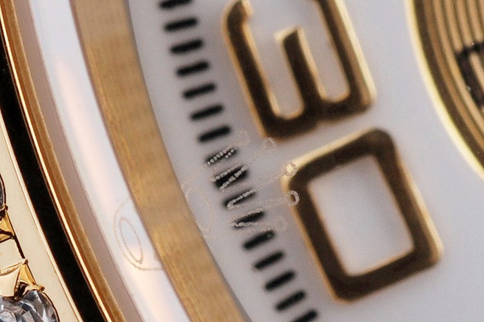 Vissza: Arany-tónusú rozsdamentes acél Push-in Case Vissza a Rolex gravírozással