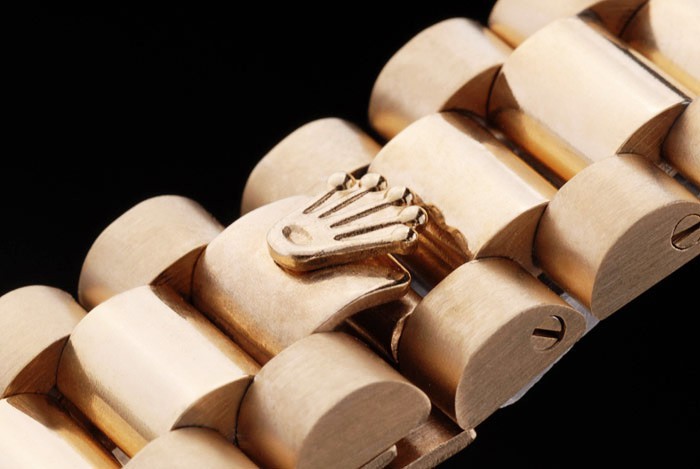 karkötő: 18k sárga aranyozott rozsdamentes acél link karkötő rolex gravírozás rejtett kapocs megjelenítése a rolex logó