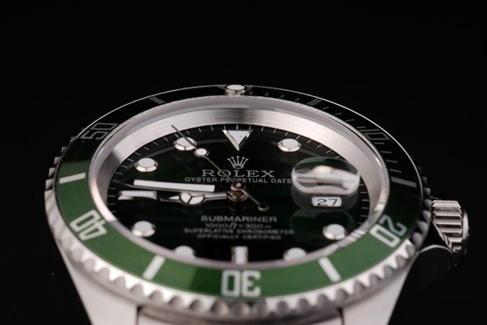 Vissza: Nyomja meg a rozsdamentes acélból Vissza a zöld rolex matricával és jelölésekkel