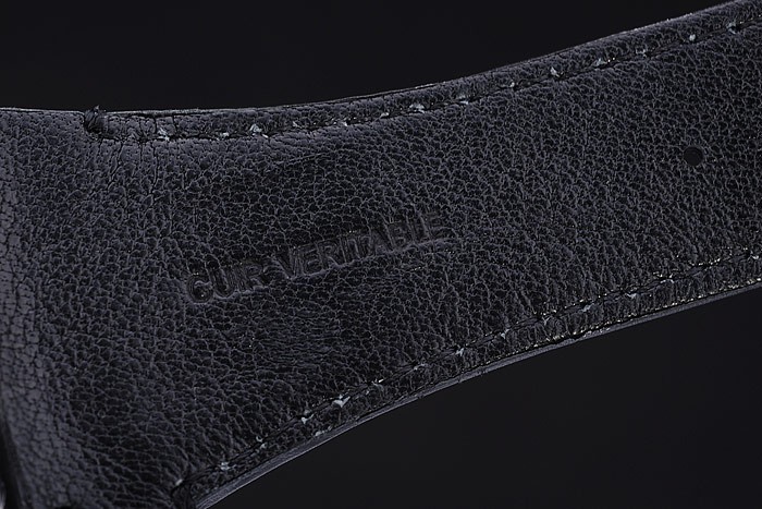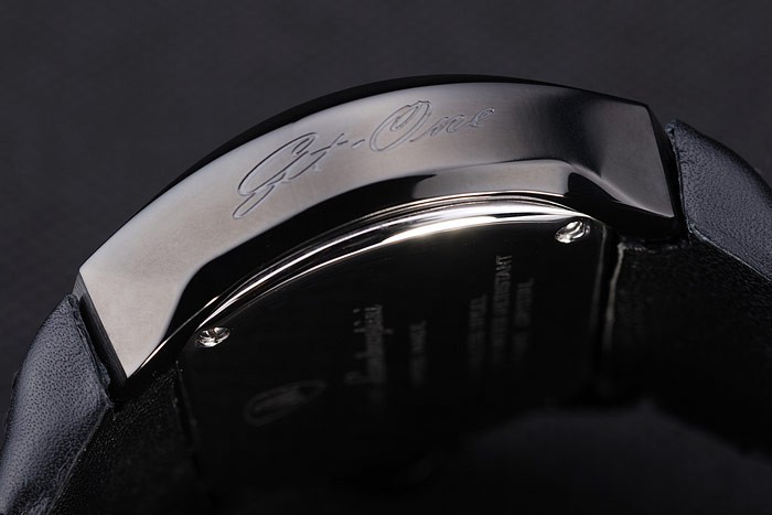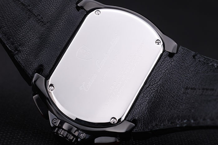 Case: Ion-bevont rozsdamentes acél tok Karkötő: fekete bőrszíj hő dombornyomott bélyegzővel és tonino lamborghini tonino lamborghini logó dombornyomott és gravírozott ion bevonatú hajtás flip-over hook clasp