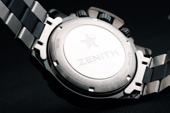 Vissza: rozsdamentes acél push a hátoldalon a Zenith feliratok