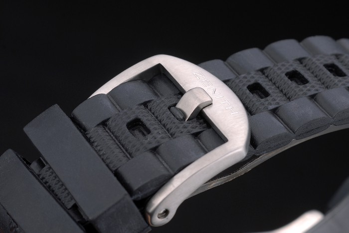 Case: csiszolt rozsdamentes acél tok Karkötő: texturált fekete gumi link karkötő horogcsavart és “Zenith” felirattal