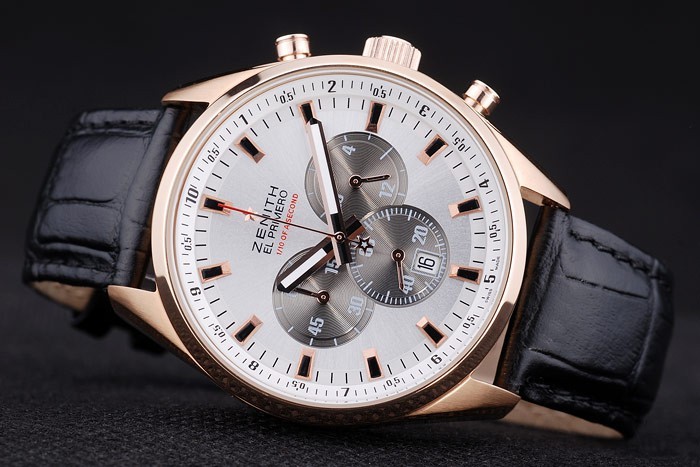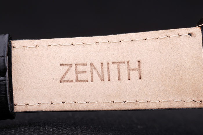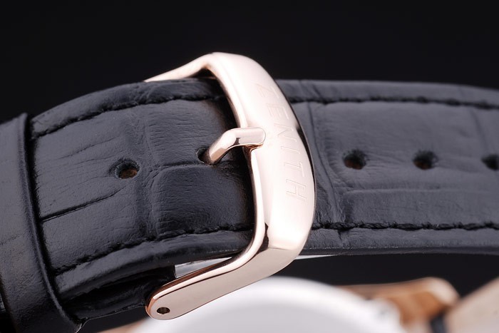 Crown: Rose-aranyozott vágás korona Zenith csillag logó gravírozás és két kisebb kerek nyomógomb koronák mindkét oldalon Case vastagság: 12 mm